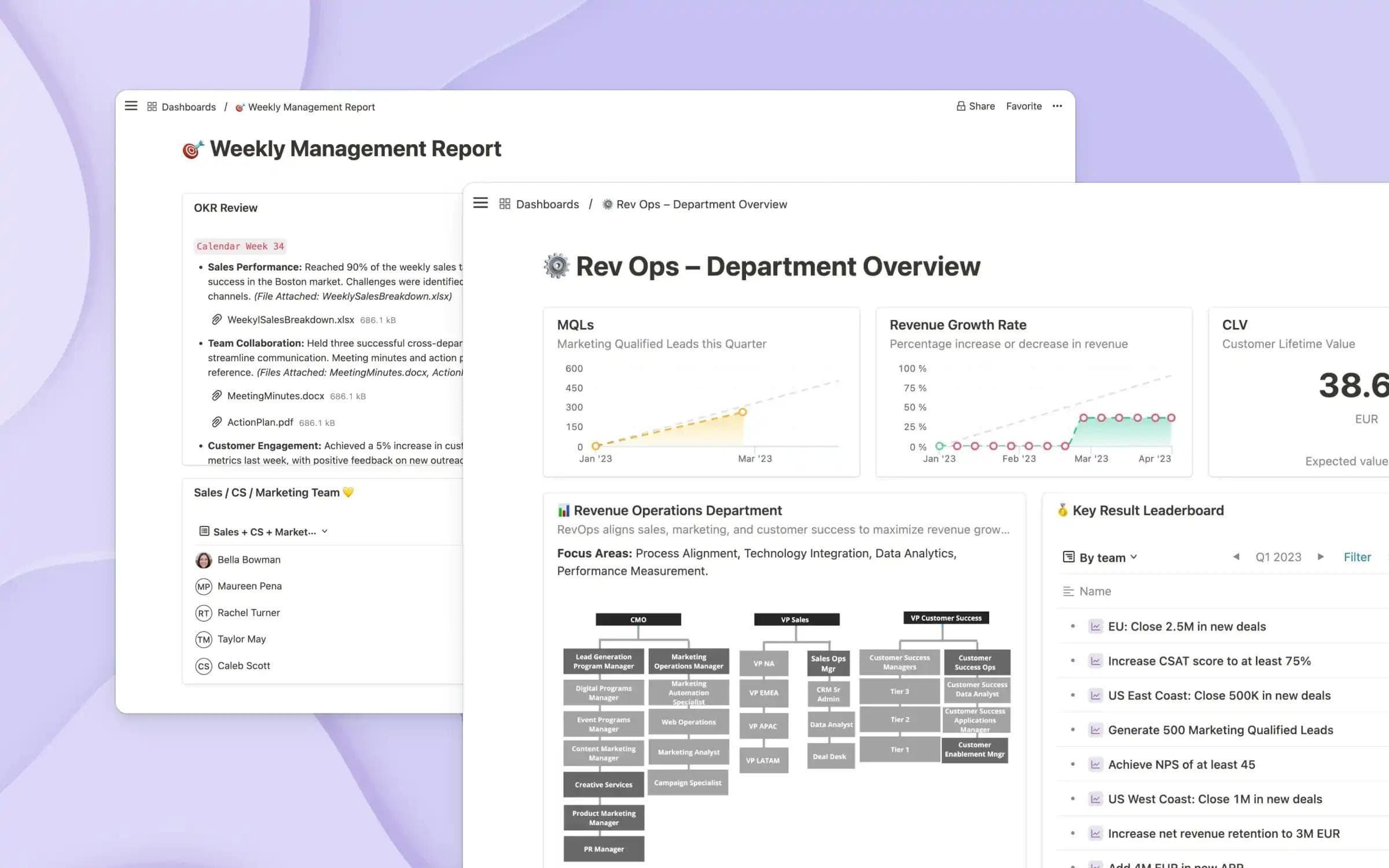 - Custom KPI dashboards: Allows users to create customized KPI dashboards that track performance against specific objectives. This flexibility provides a clearer view of how different departments or individuals are contributing to overall goals.