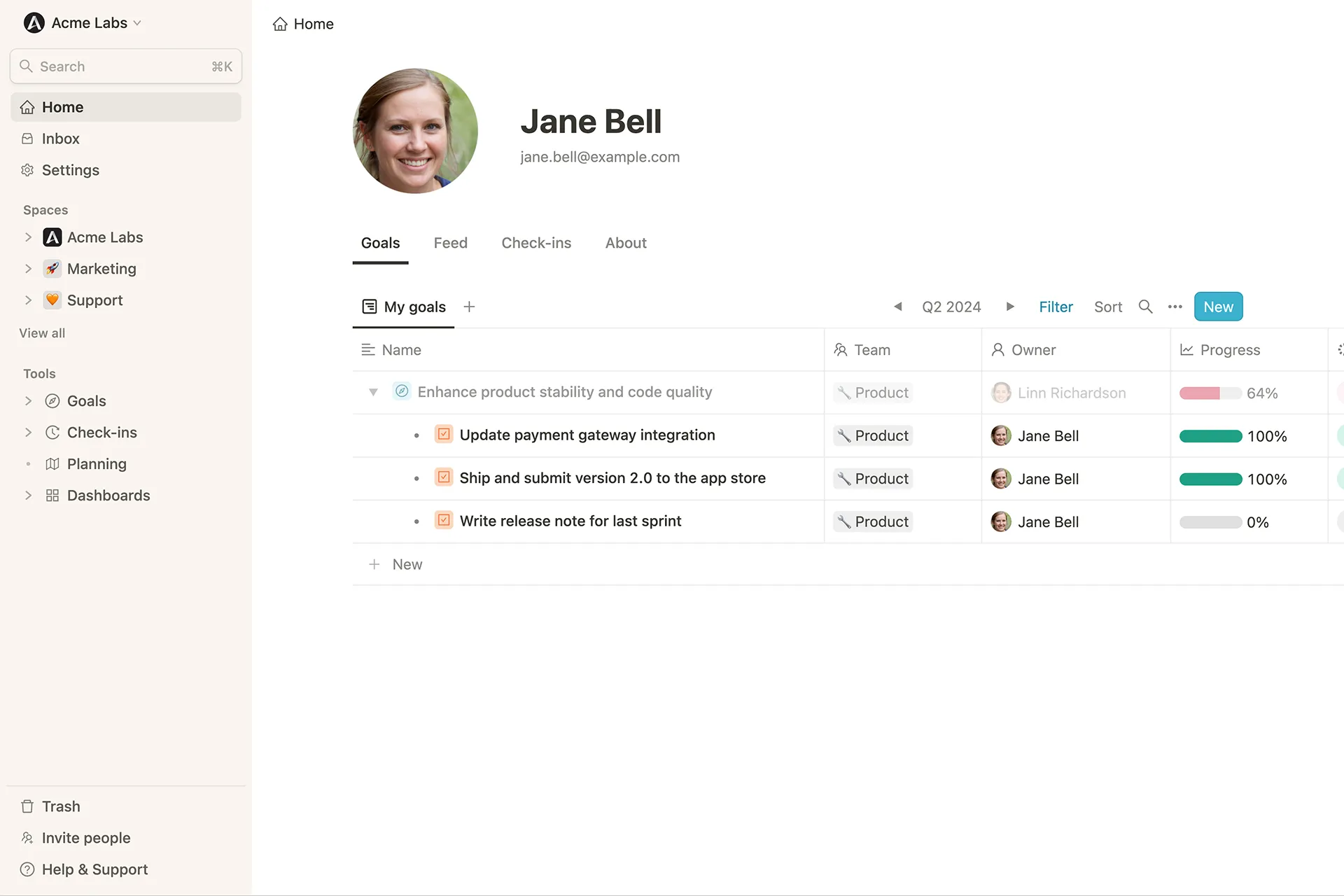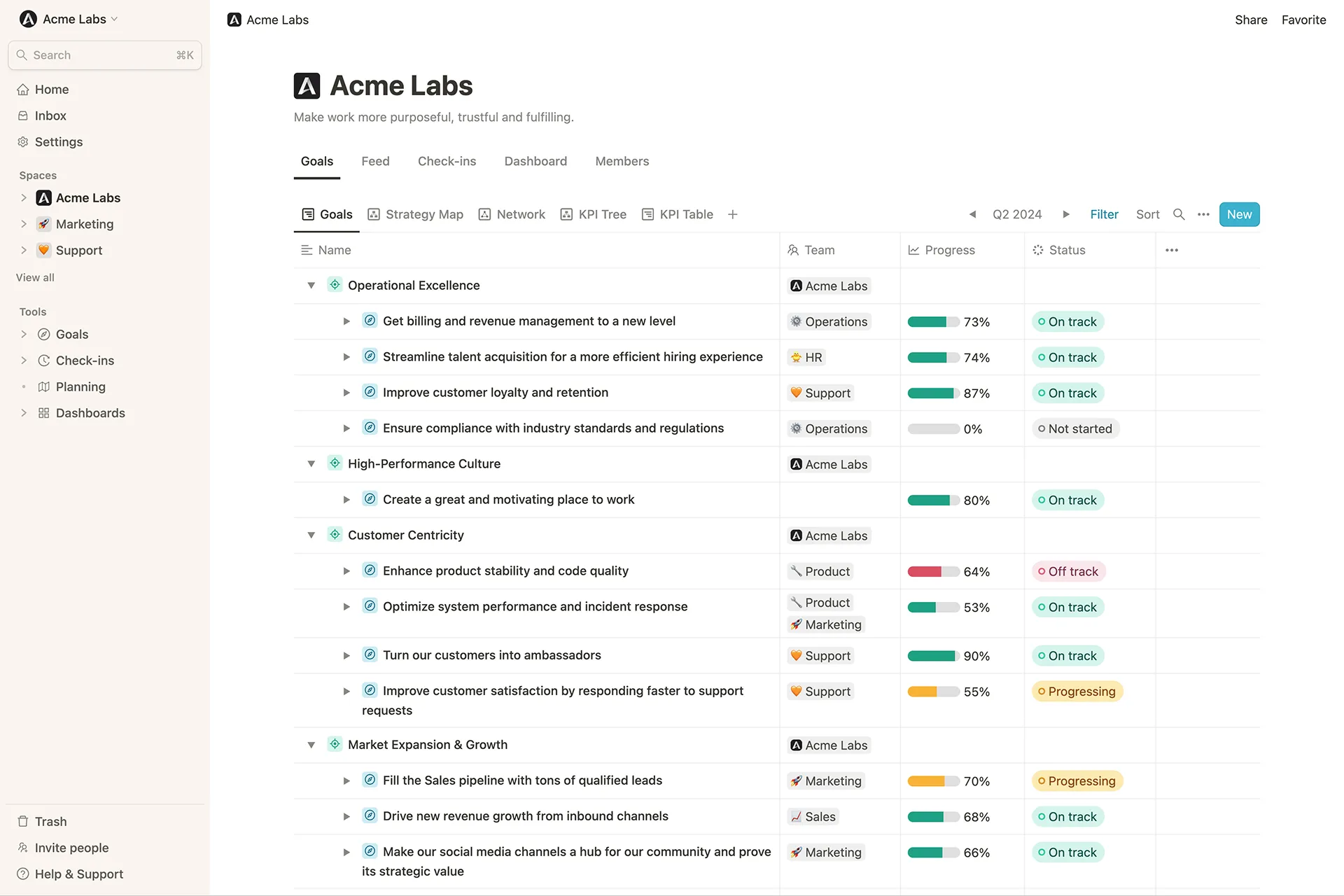 Hier siehst du alle dir zugewiesenen Ziele auf einen Blick. Du kannst auch Filter verwenden, um festzulegen, welche Ziele auf deiner eigenen Homepage angezeigt werden sollen.