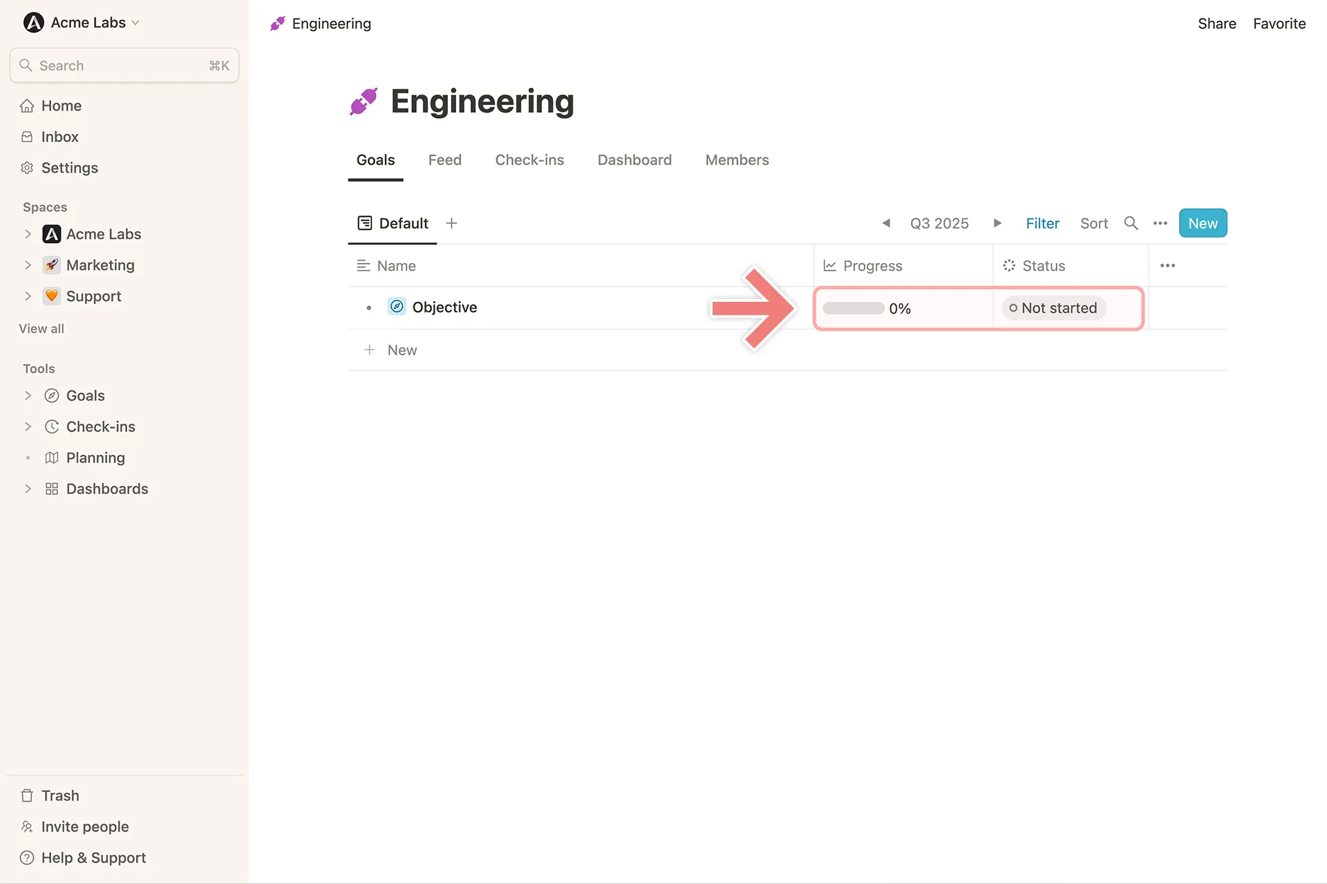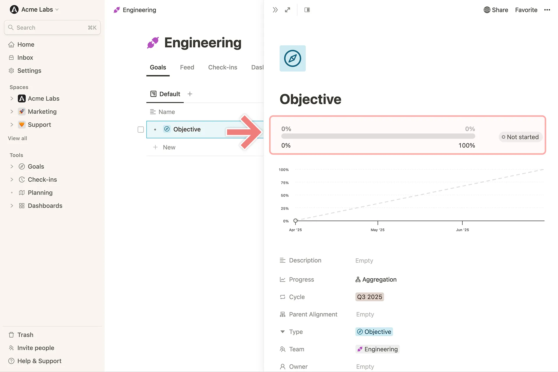 Fortschritt von Zielen in Mooncamp aktualisieren