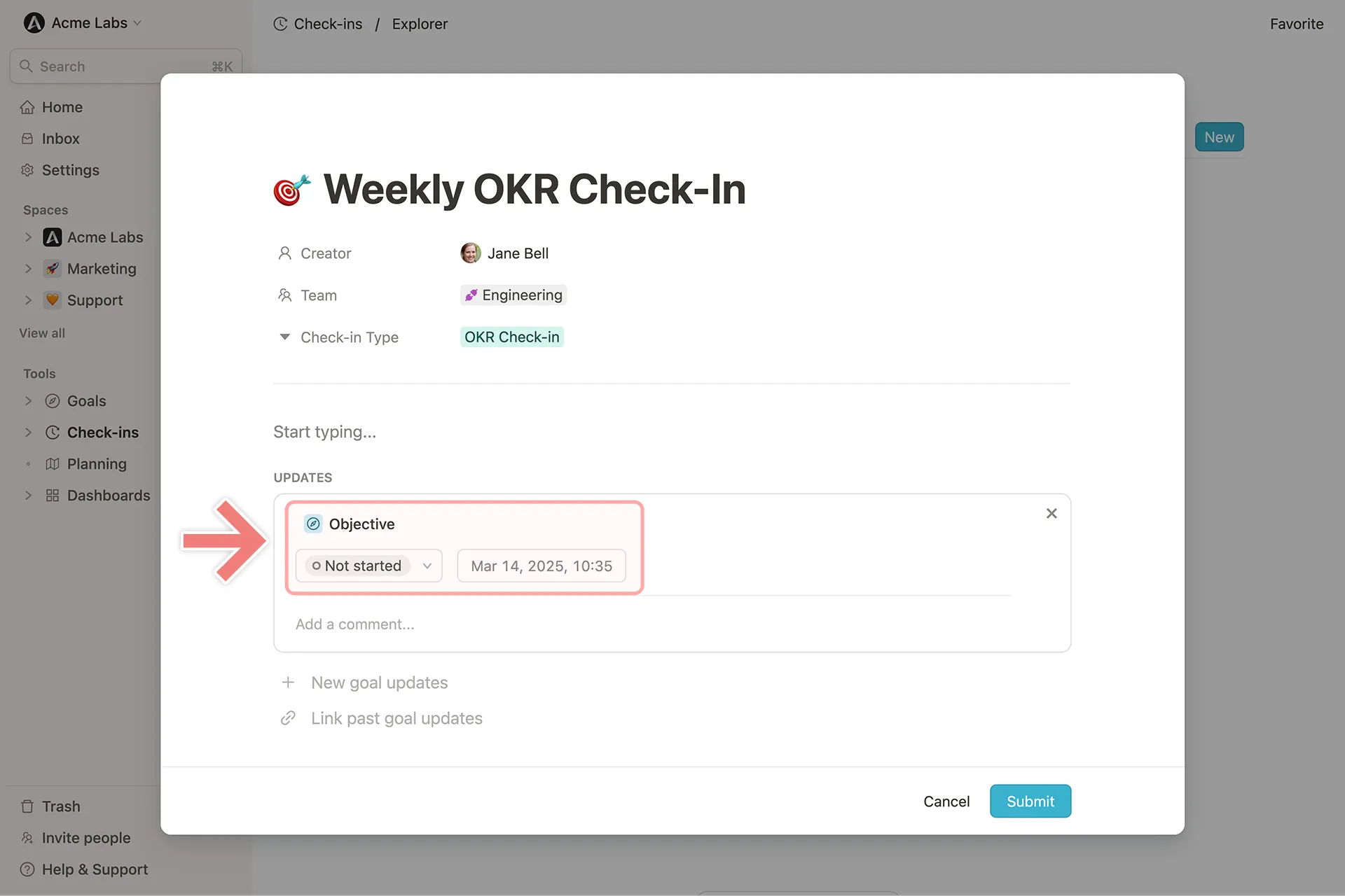 Fortschritt von Zielen in Slack aktualisieren